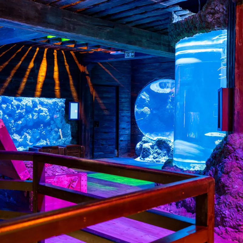 Bien que tout l’aquarium soit « kids-friendly », la zone du Navire Naufragé (Barco Afundado) avec ses couleurs éclatantes et le Parc de Jeux extérieur (Parque Exterior) sont les grands favoris. L’aire de jeux permet aux enfants de se dépenser après l’observation calme des poissons. 🎢